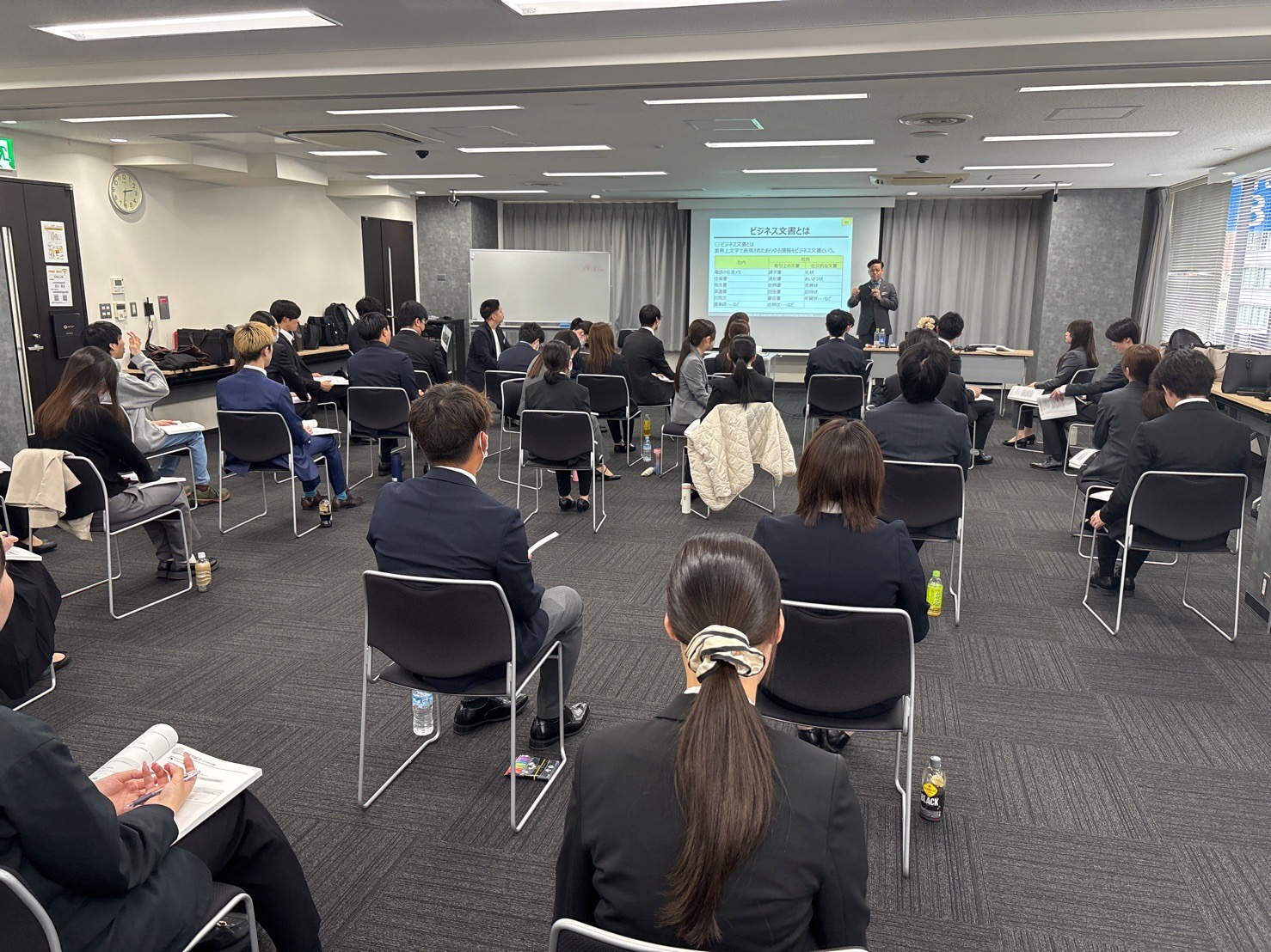 少し緊張した面持ちで、パリッとしたスーツに身を包んだメンバーたちが研修会場へと向かいました。
